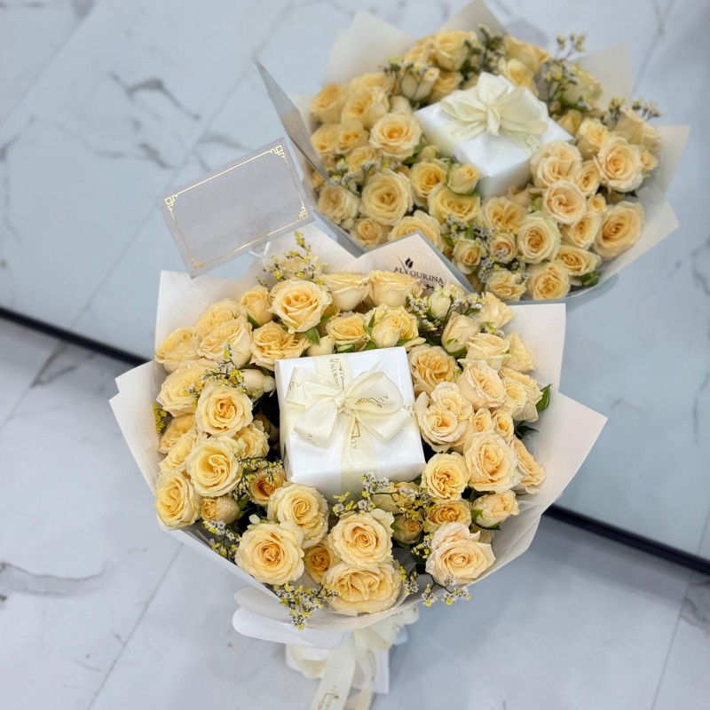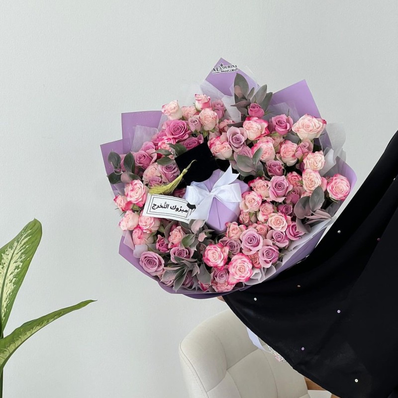 ممكن تختار نوع المناسبه شكل أو حجم الباقة ونوع الورد ممكن يختلف حسب المتوفر. مدة تجهيز الطلب: من ساعة إلى 12 ساعة. تقدر تكتب بطاقة إهداء أو أي ملاحظة في خانة الملاحظات قبل ما تكمل الطلب.