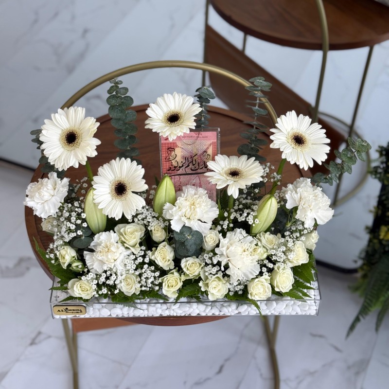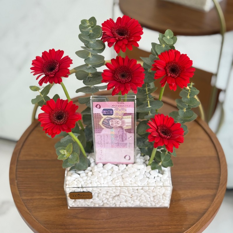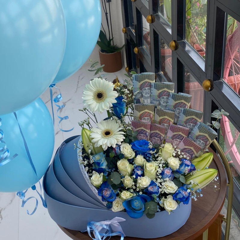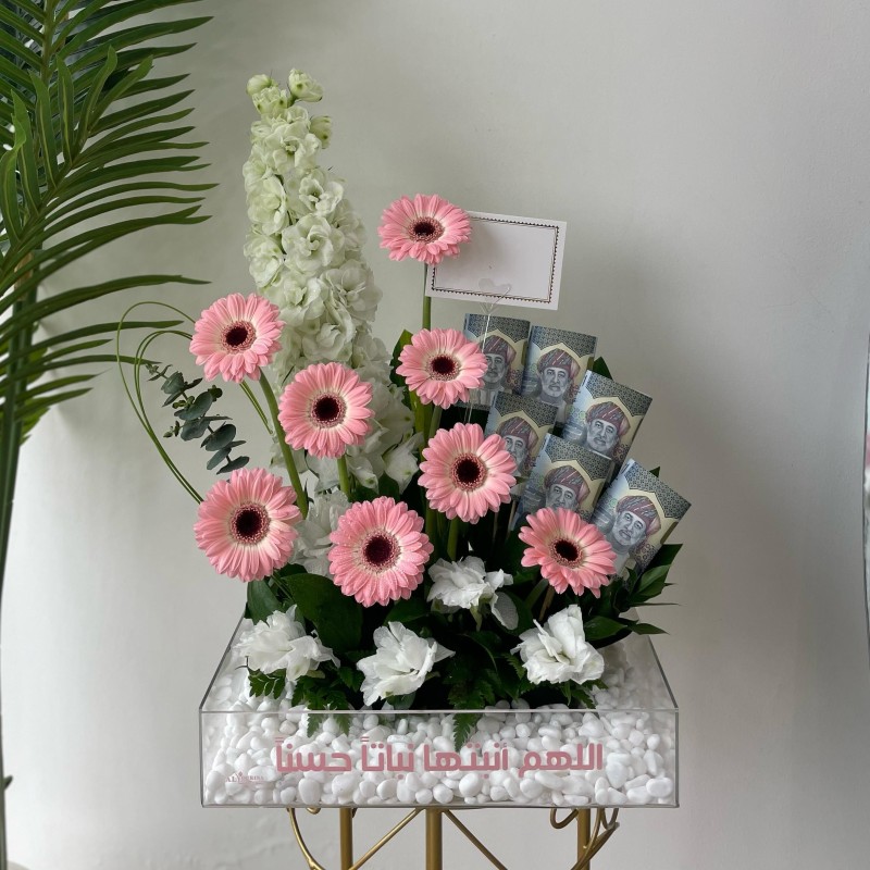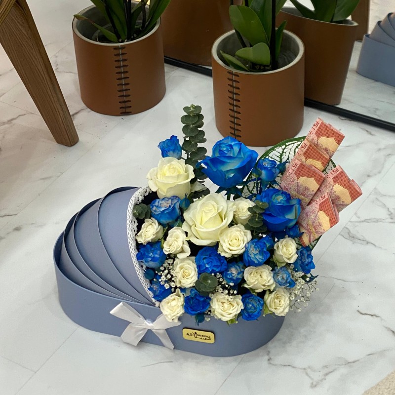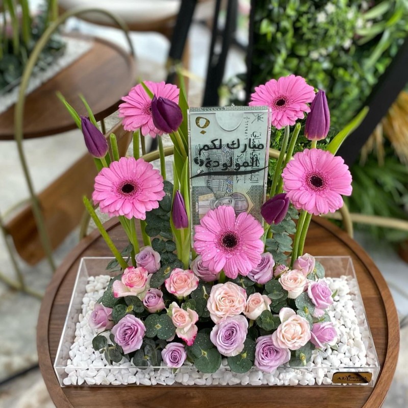 ممكن نحط لك مبلغ مالي حسب رغبتك ف الهديةشكل أو حجم الباقة ونوع الورد ممكن يختلف حسب المتوفر. مدة تجهيز الطلب: من ساعة إلى 12 ساعة. تقدر تكتب بطاقة إهداء أو أي ملاحظة في خانة الملاحظات قبل ما تكمل الطلب.